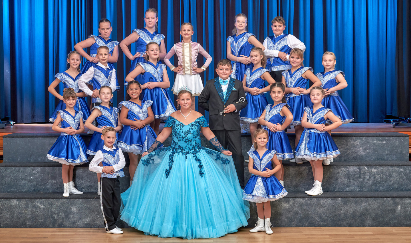 Unsere Minis im Alter von 7 bis 12 Jahren werden spielerisch an den Gardetanz und den Showtanz herangeführt. Altersgerechte Choreografien fördern dabei sowohl Koordination als auch erste Sprung- und Bewegungselemente. So lernen die Kinder früh, Freude am Tanzen mit Teamgeist zu verbinden.